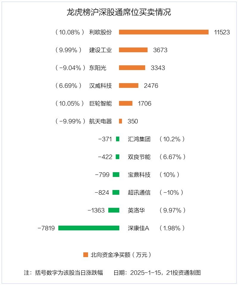 北向资金净买入6股,净卖出6股1月15日,北向资金参与龙虎榜中的个股共有12只,合计净买入1.15亿元。其中沪股通净买入1股,净卖出3股,合计净买入1725.05万元;深股通净买入5股,净卖出3股,合计净买入9748.41万元。